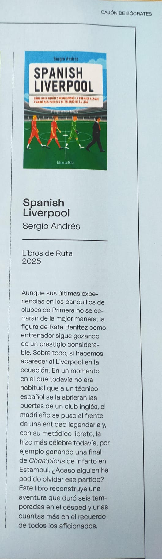 Spanish Liverpool narra esos seis años en Inglaterra, contando lo futbolístico y también lo humano, con los testimonios de muchos de sus protagonistas: jugadores, entrenadores, rivales, periodistas o incluso aficionados, que nos ayudan a entender lo que significa este club y esta ciudad. Este libro es un testimonio de ese equipo, de esos años, de esos protagonistas españoles, de esos goles… De esos You´ll never walk alone en Anfield.