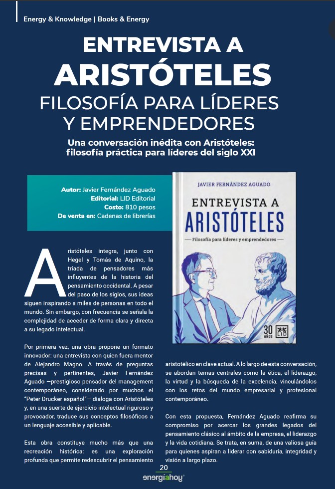 Por primera vez en la historia, alguien ha entrevistado a quien fuera el coach de Alejandro Magno. Entrevista a Aristóteles lleva al lector a un viaje por la mente de uno de los pensadores más influyentes de la historia de la mano de Javier Fernández Aguado, conocido por muchos como el Peter Drucker español, quien, a modo de agudo y riguroso reportero, tira de la lengua a Aristóteles para facilitar el acceso a su pensamiento y extrae importantes reflexiones.